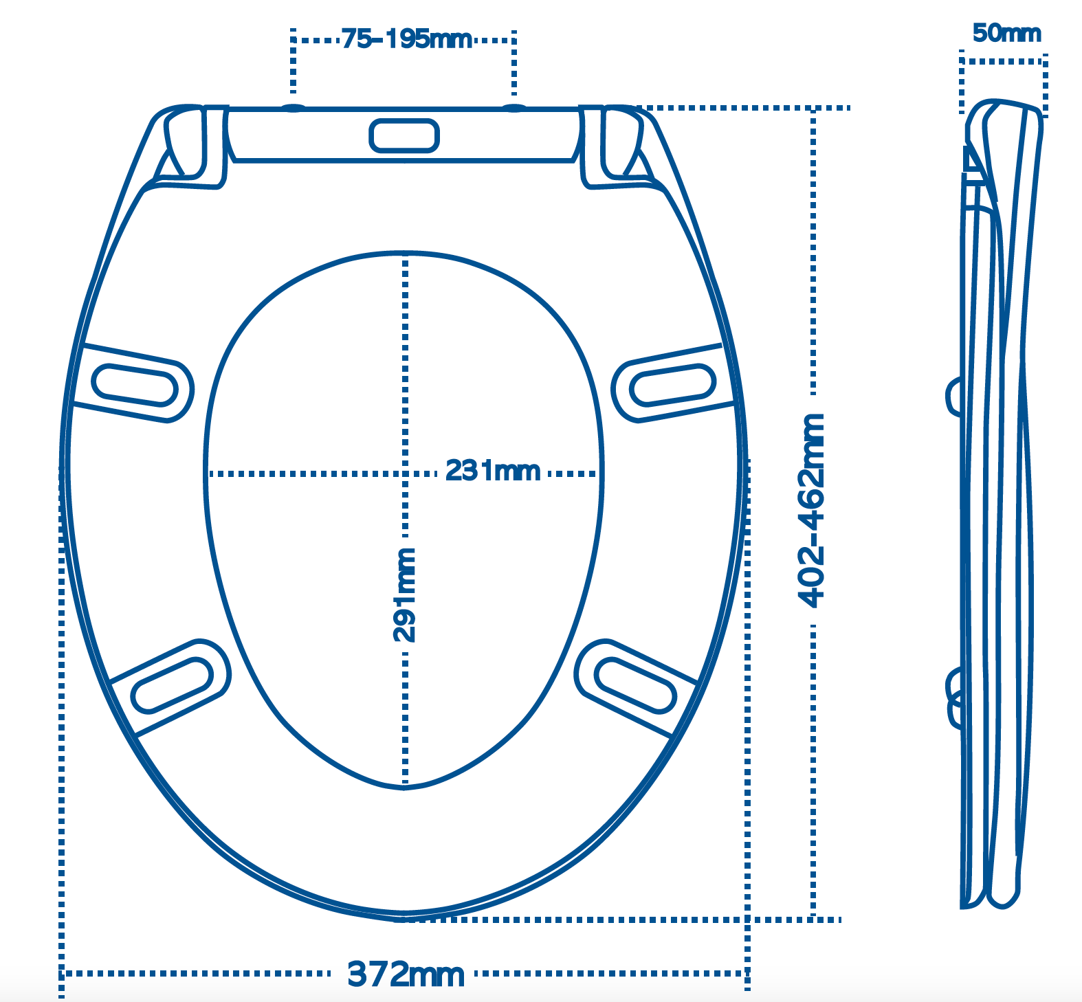Dzięki uniwersalnemu kształtowi typu owalnego i regulowanemu rozstawowi zawiasów, deska klozetowa KORAL pasuje do większości standardowych misek WC.