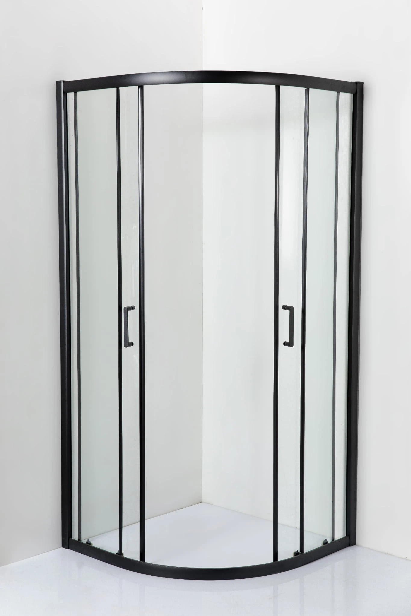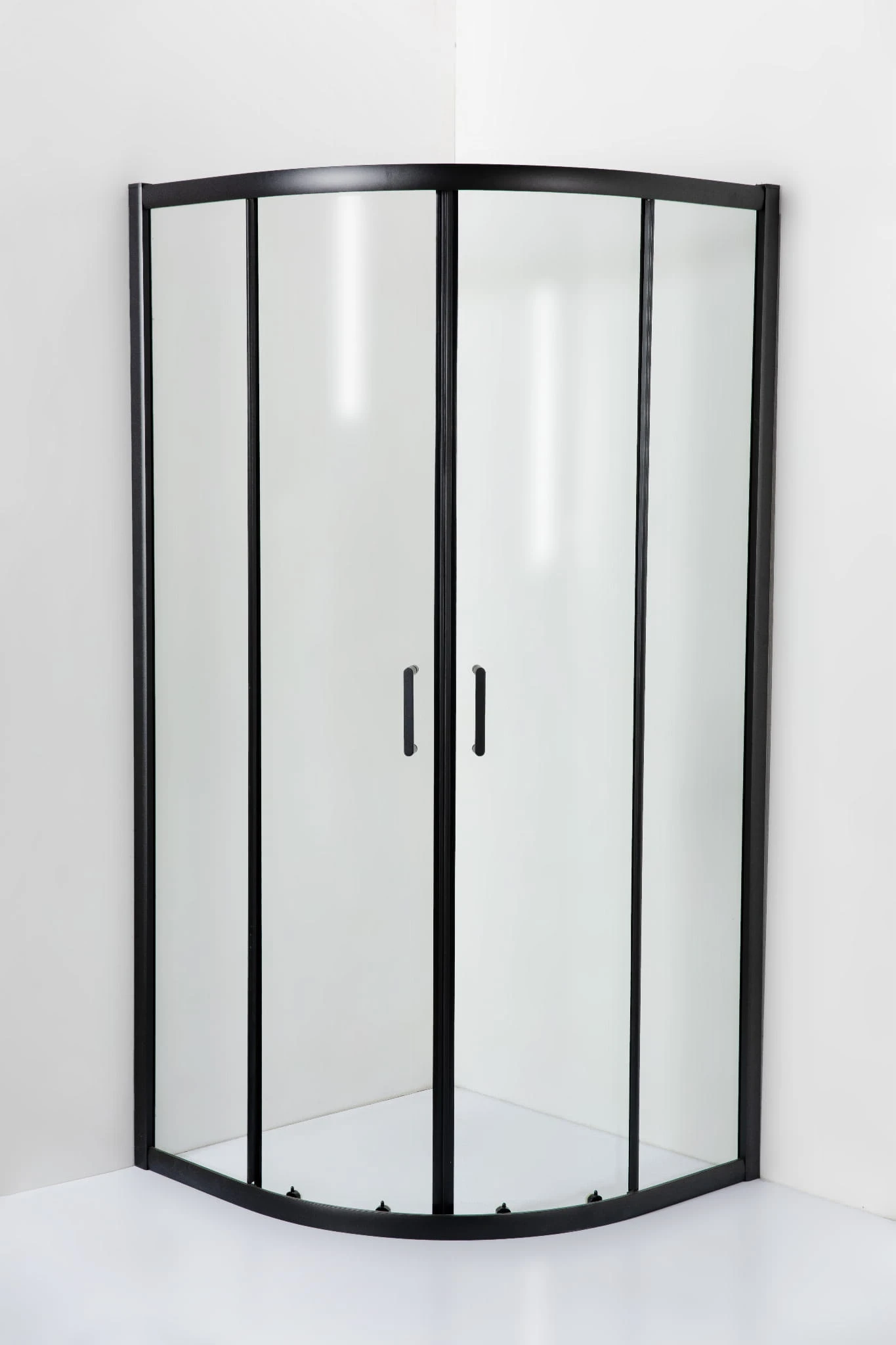 Kabina prysznicowa 1/4 koła HEDE 90×90×195 cm w czarnym wykończeniu to narożne rozwiązanie z drzwiami przesuwnymi, które ułatwia ustawienie wyposażenia w łazience (drzwi nie „wchodzą” w przestrzeń przed kabiną). Format 90×90 zapewnia wygodniejszą strefę kąpieli niż mniejsze kabiny narożne, a transparentne szkło utrzymuje lekki wygląd zabudowy.