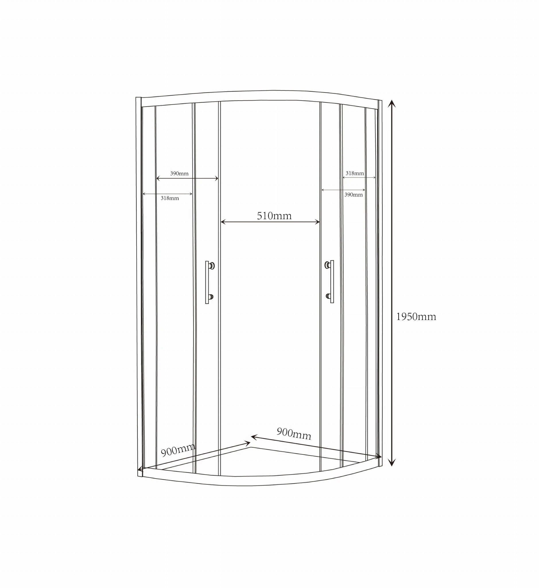 Tak. Kabina ma kształt 1/4 koła i wymiary 90 × 90 cm. - Jaki jest promień kabiny?