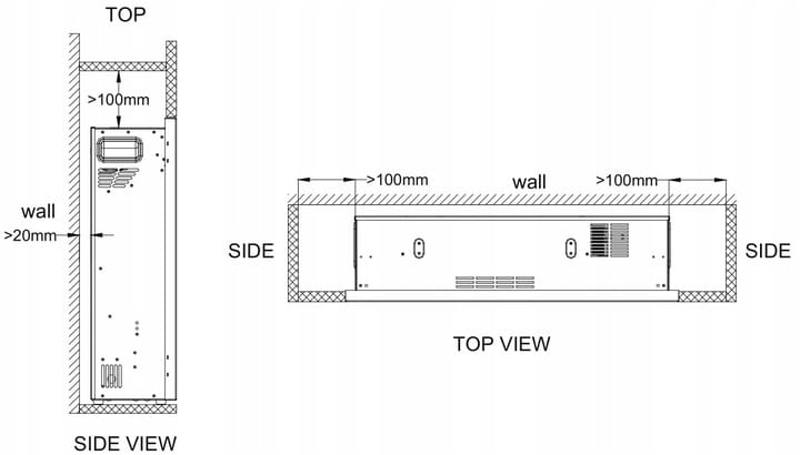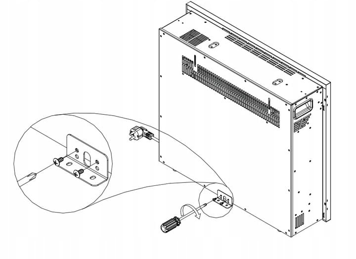 Wkład przeznaczony jest do zabudowy. Podczas planowania obudowy wykorzystaj wymiary montażowe 55 x 13 x 48 cm oraz wymiary samego wkładu 58 x 15 x 50 cm. Zasilanie: 230V~50Hz. Po montażu funkcje grzania (1000W/2000W), jasność płomienia, natężenie światła, timer oraz ustawienia termostatu obsługuj pilotem.