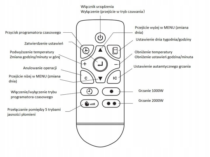 - sterowanie: pilot, elektroniczne wyświetlanie temperatury i timer