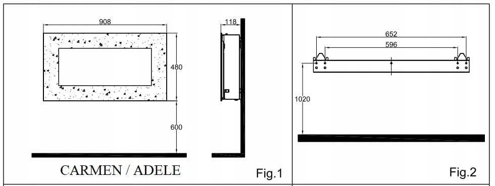 Rysunek techniczny kominek elektryczny