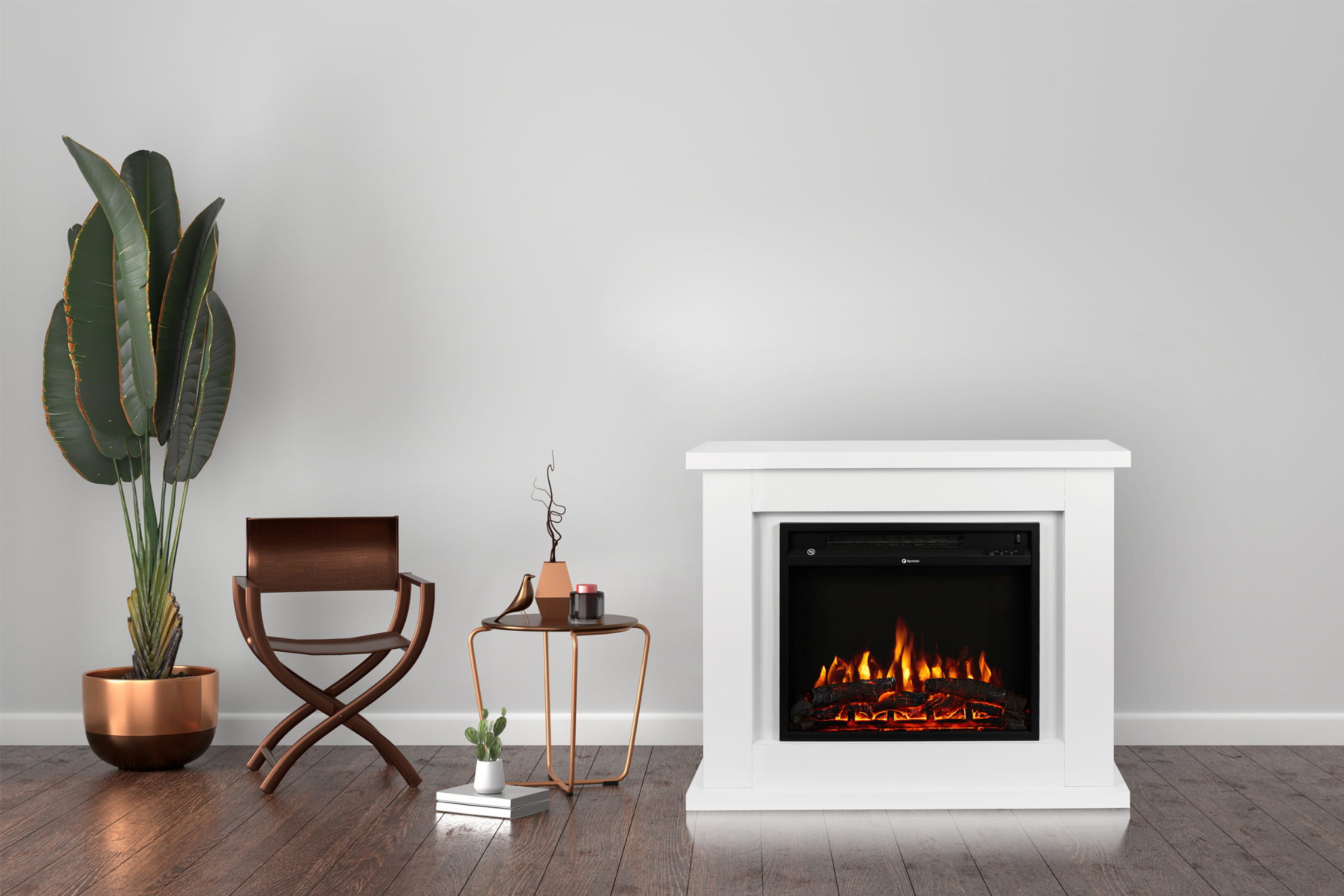 Kominek elektryczny wolnostojący DIANA (biały) zapewnia realistyczny efekt palącego się drewna LED i pozwala dogrzać pomieszczenie bez instalacji kominowej. Efekt płomienia działa niezależnie od grzania, więc kominek może tworzyć klimat we wnętrzu także wtedy, gdy nie potrzebujesz dodatkowego ciepła.