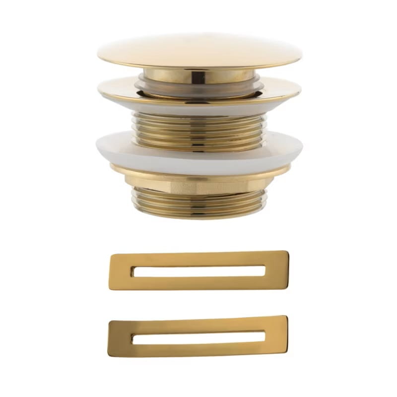 Korek wannowy klik‑klak w złotym kolorze to funkcjonalny element wyposażenia łazienki, łączący prosty montaż z eleganckim wyglądem. Wykonany z mosiądzu i pokryty chromowaną powłoką, charakteryzuje się dobrą odpornością na działanie wilgoci oraz codzienne użytkowanie. Korek ma standardową średnicę 70 mm i pasuje do wielu modeli wanien. System drop-click umożliwia łatwe otwieranie i zamykanie – wystarczy jedno naciśnięcie. W zestawie znajdują się także elementy łączeniowe i mocowania, co pozwala na szybki montaż.