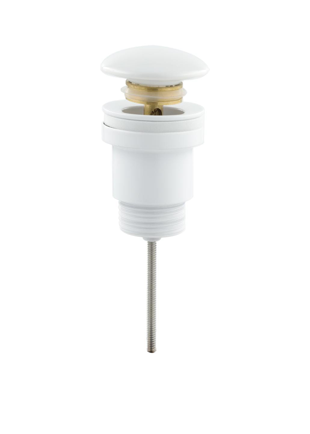 Wygodny w obsłudze, solidnie wykonany, łatwy w utrzymaniu czystości korek klik klak okrągły duży z tuleją i przelewem. Znajdzie swoje zastosowanie w umywalkach, gdzie umożliwia wygodne otwieranie i zamykanie odpływu za pomocą jednego kliknięcia - bez konieczności wyciągania całej zatyczki. Dostępny w wariantach: chrom, czarny-mat, złoty, biały ceramiczny