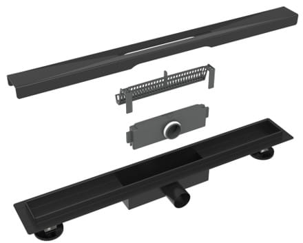 Odpływ liniowy z wbudowanym spadkiem niski wąski Aisi 304 XILO Czarny