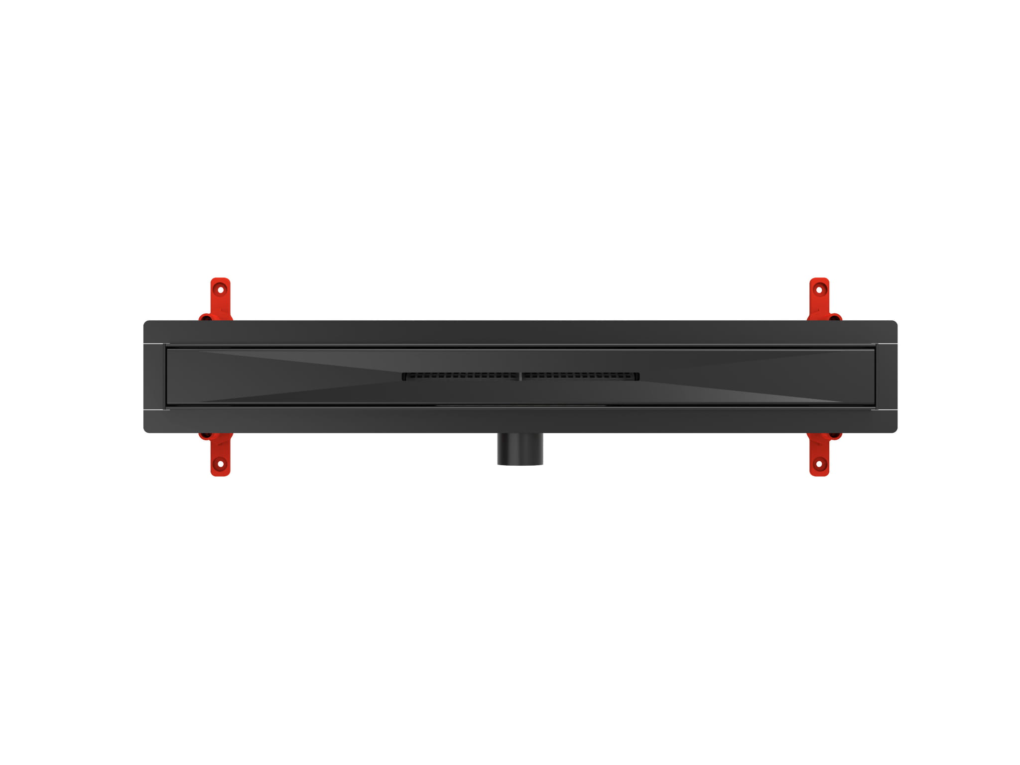 Odpływ liniowy SLIM X czarny mat to designerski odpływ prysznicowy z dekoracyjnym wzorem /przetłoczeniem w formie litery X. Matowe wykończenie nadaje mu eleganckiego i nowoczesnego charakteru. Konstrukcja ze stali nierdzewnej gwarantuje trwałość i odporność na wilgoć. To odpływ podłogowy, który podkreśla unikalny styl łazienki.